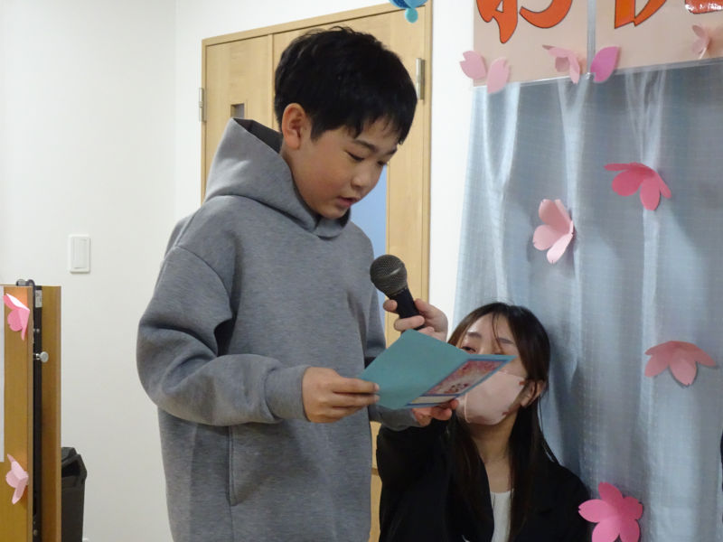 小学生以上は今年も去年と同様に「新年度の目標」と「母への“ありがとう”の言葉」を皆の前で発表しました。特に、新1年生は初めてでしたが堂々と発表することが出来ました。