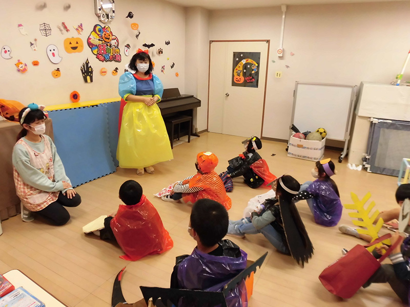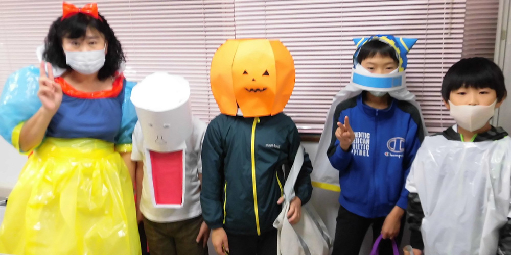 10月30日(金)施設内仮装パティーを取り行いました。小学生がこの日のために前もって計画を立て自分でなりたいキャラクターを手作りで作り仮装して施設内をまわります。今回の仮装も子供たちのオリジナリティーあふれる作品が多く、マスクも自分の仮装の一部として工夫してきた子もいて「すごい!」と思いました。これじゃあ、お化けも怖くて逃げだしちゃうくらいでありました👻