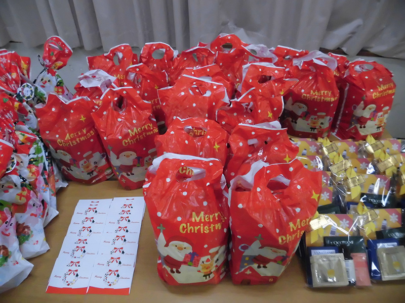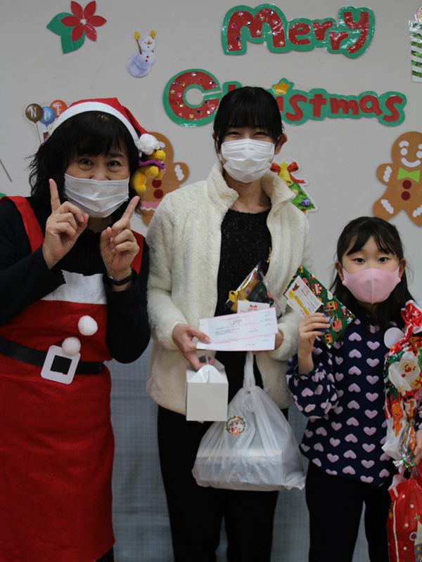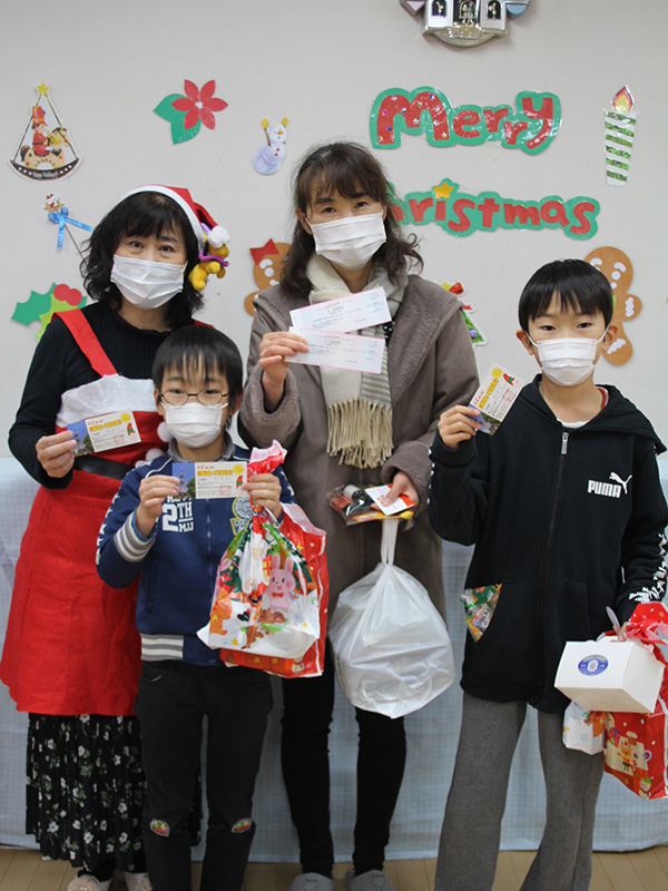 母と子のいっぱいの笑顔を見ることが出来私たちもとてもうれしく思いました。その後は各家庭で親子に配布したオードブルとケーキを美味しく食べてクリスマスという日を過ごしておりました。