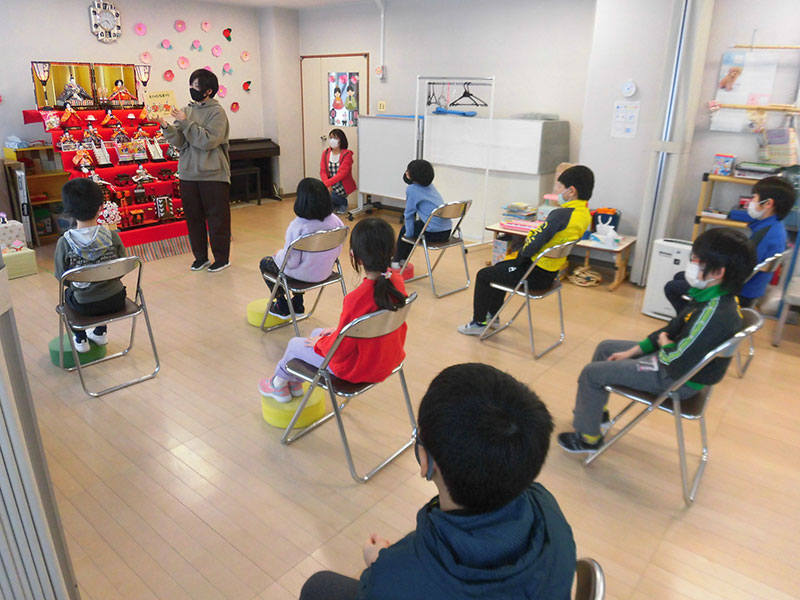 コロナ感染対策を徹底した上で紙芝居ひな祭りの由来やクイズなどを行い子どもたちと楽しい時間を過ごしました。(^<^)