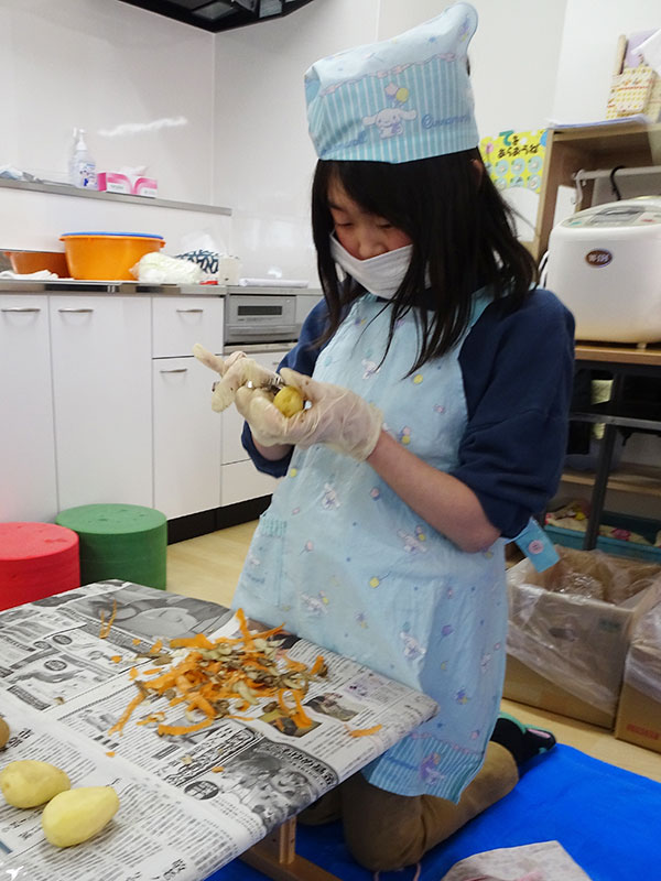 会の前日にはみんなでスーパーに買い物へ行き、必要な材料を分担して買い物を行いました。当日は「野菜を切る」「肉を切る」「米研ぎをする」など学年に合わせた役割分担をしてカレーとサラダ、パフェを作りました。パフェ作りでは、みんなそれぞれのアイスやフルーツのデコレーションを作っていました!