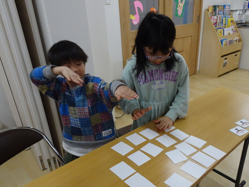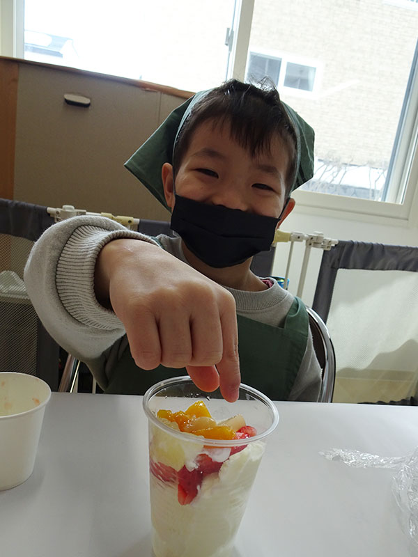 子ども達は、チームに分かれて絵合わせゲームをして楽しみました。熱戦続きでとても盛り上がりました。ミニゲームをして楽しんだ後は皆でテーブルを囲って、【甘酒・おしるこ・ひなあられ・金平糖】といった “ ひなまつり ” ならではの食べ物を頂きました。甘酒は初体験の子も多く残す子もいましたが、それ以外は美味しく完食することが出来ました。