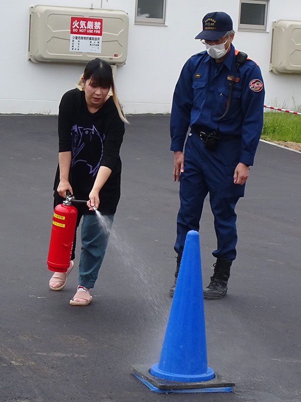 今年は夜間の火事を想定した避難訓練と消火器の体験、AEDの使い方について実際の消防士の方に来てもらい、ご指導いただきました。今年から新しい建物の中で、親子で避難経路を確認しながら落ち着いて取り組むことが出来ました。消防車の展示を行い、子どもたちは大喜びで見学する様子や親子で写真をとる様子が見られました。今回は協力して頂きました南区川沿出張所の消防士の皆様方本当にありがとうございました。