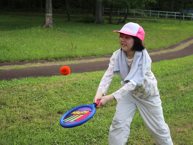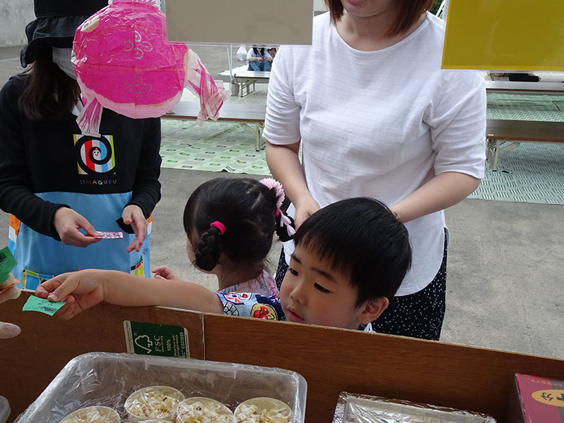 今年はチケットを配布して、屋台と縁日を行いました。去年よりも広くなり、縁日はおかしすくいや輪投げ、ヨーヨーなどがあり、今年から新しくモルックというゲームが加わり、挑戦者の列ができました。