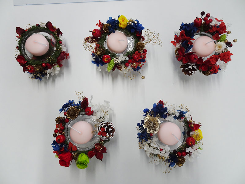 今年も講師の方に来ていただきフラワーアレンジメントを行いました。