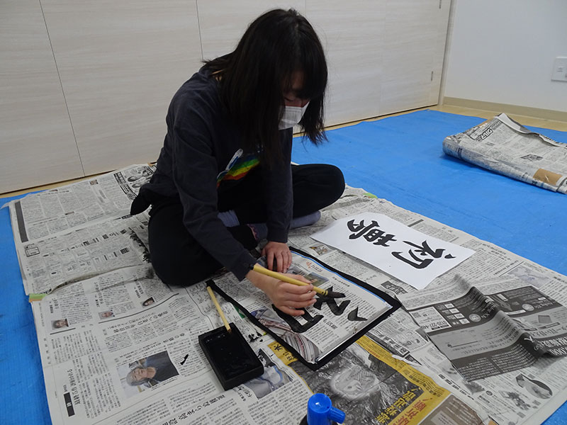 特に、1年生にとっては初めての書道で「とめ・はね・はらい」を意識して書くことに苦労していましたが職員が手を添えながら教えていくと綺麗に書けるようになっていきました。他の児童も“もいわ荘”や“学校”での経験を活かして、丁寧で綺麗な字を書くことができました。