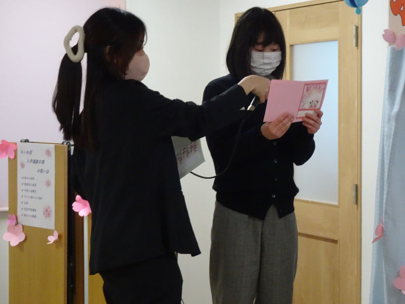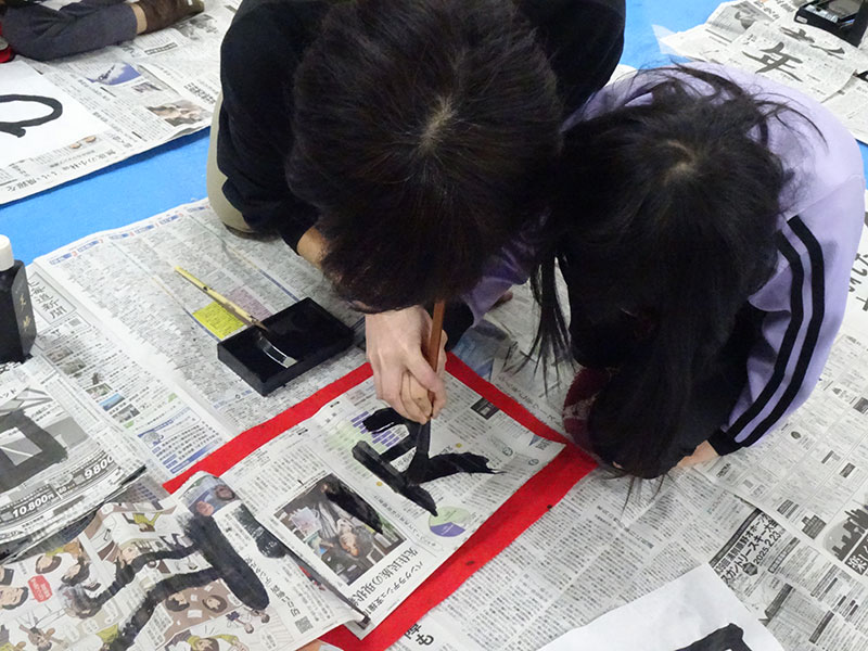 書道後は、絵馬に目標などを書いて、特設の“もいわ荘神社”に飾りました。