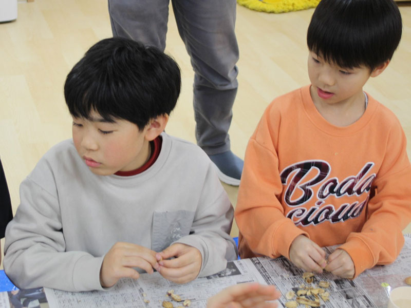 1年生などは初めて参加する子も多く、怖がる子もいるのかなと思いましたがそのようなことはなく。皆、全力で落花生を投げていました。その甲斐もあり、鬼は山へ逃げ帰ってしまいました。